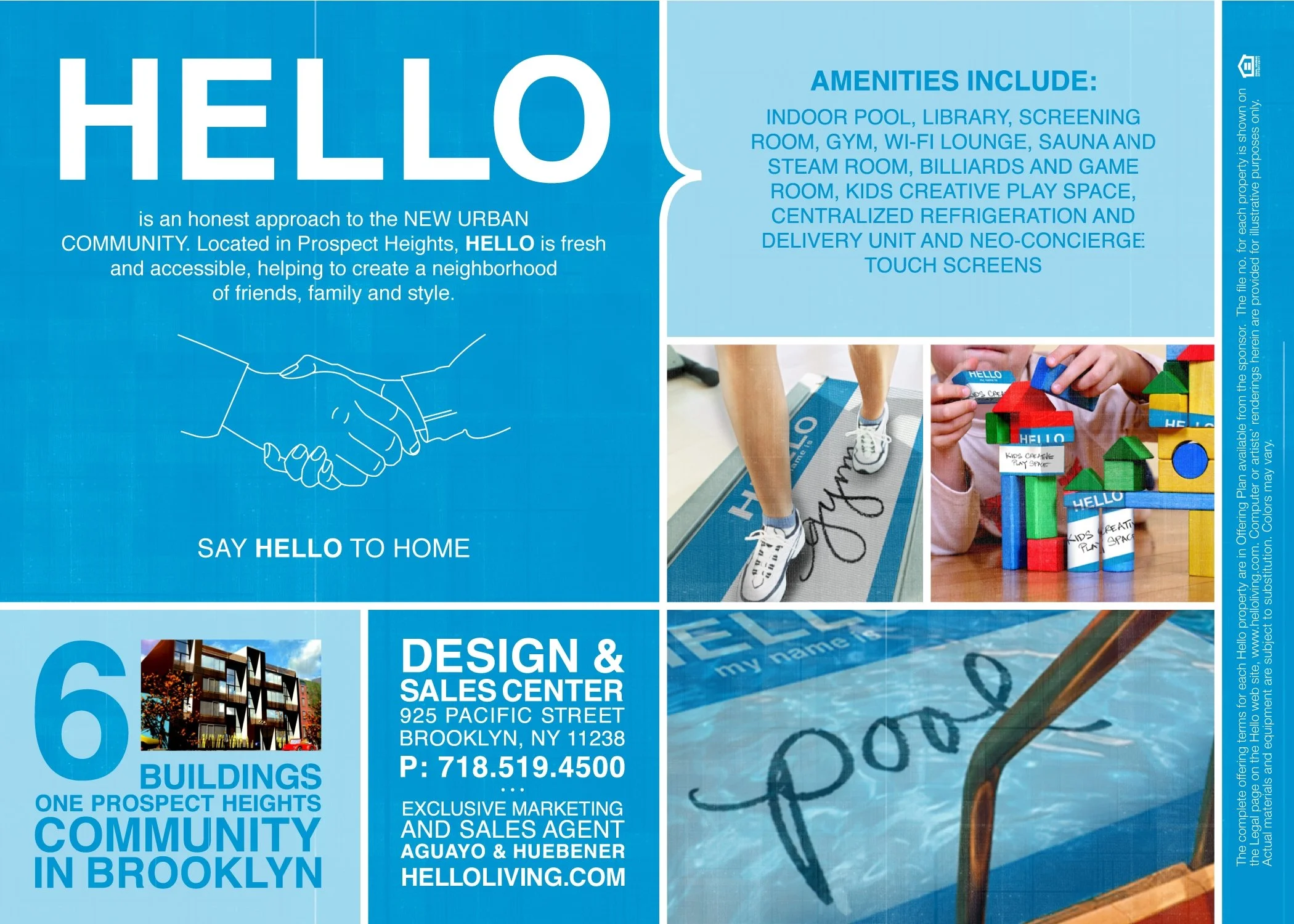 Real estate developer, Eli Karp, approached The Apt just as his company was launching its first multi-building project in Brooklyn, NY. The Apt determined a business strategy based in building community instead of condominiums, which became the foundation for Hello Living Real Estate Development and its debut project, Hello.
